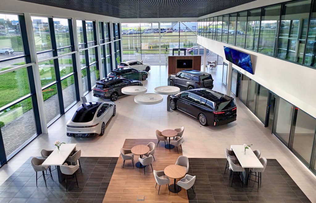 Общая площадь автоцентра составляет порядка 6000 кв.м.  Шоурум вмещает порядка 10 автомобилей и включает комфортные зоны для общения с экспертами бренда. Дополнительно 400 кв. м занимает лаунж-зона для клиентов, причем имеется и детская зона.